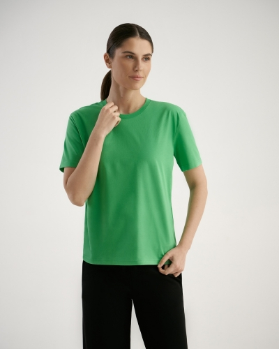 ХЛОПОК 100%Футболка полупрелигающего силуэта/ втачной рукав/ горловина окантована рибаной
