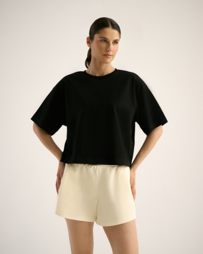 ХЛОПОК 100%Укороченная футболка CROP/ спущенное плечо. горловина из рибаны. Укрепление плечевых швов и шва горловины бейкой из основной ткани.