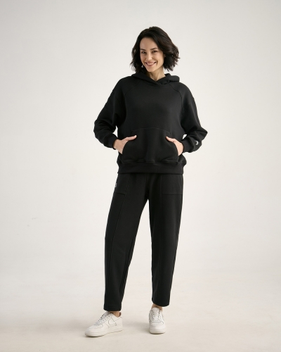 ХЛОПОК 87%; ПОЛИЭСТЕР 13%Худи женский свободного силуэта. Двойной капюшон с одним швом/ притачные кокетки по переду/ втачной рукав с локтевым швом. Карман "кенгуру". Манжеты и пояс из кашкорсе.