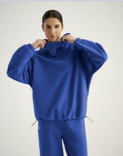 ХЛОПОК 70%; ПОЛИЭСТЕР 30%Худи женский. Двойной капюшон со вставкой. Рукав реглан/ по низу рукава кулиска с резинкой внутри. По низу худи резиновый шнур с фиксатором.