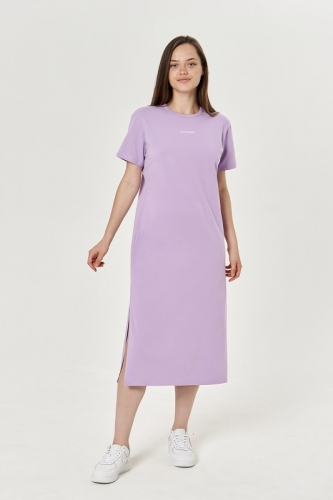 ХЛОПОК 92%; ЭЛАСТАН 8%Платье прямого силуэта . Длина миди. Втачной рукав. В боковых швах разрезы. горловина окантована.