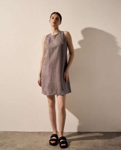 ЛЁН 100%Платье короткое из льна .Шов на спинке.