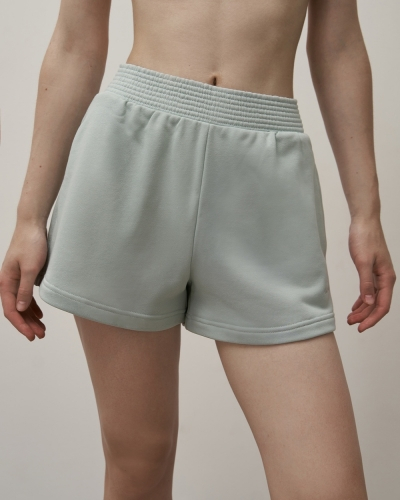 ХЛОПОК 87%; ПОЛИЭСТЕР 13%Шорты расклешенные книзу/ высокая талия. Пояс из основной ткани/ отстроченный