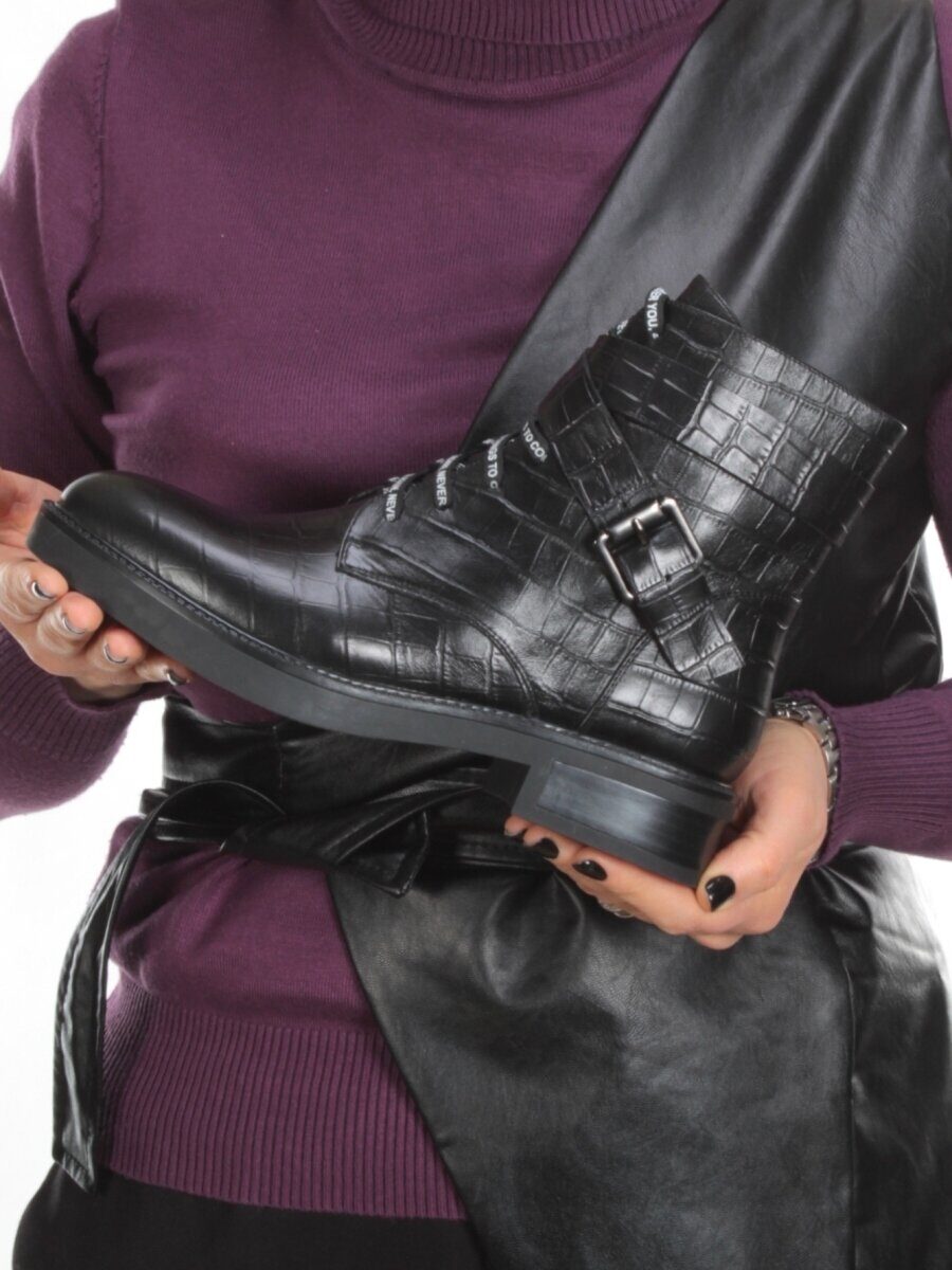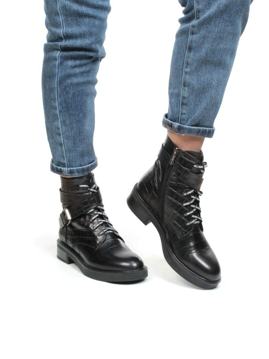01-CH8361-21B100M BLACK Ботинки демисезонные женские (натуральная кожа, байка)