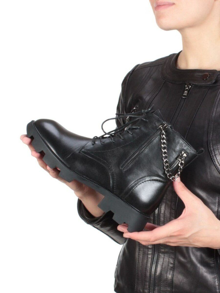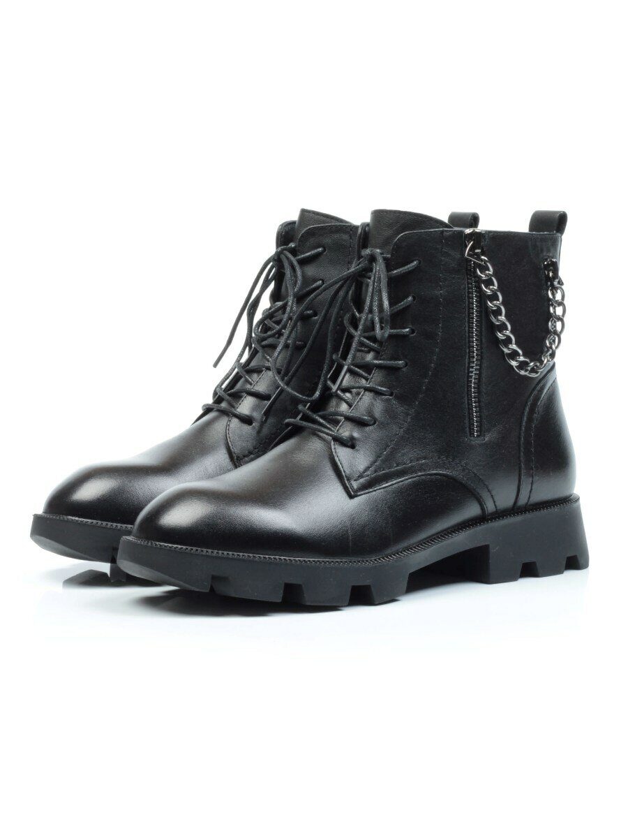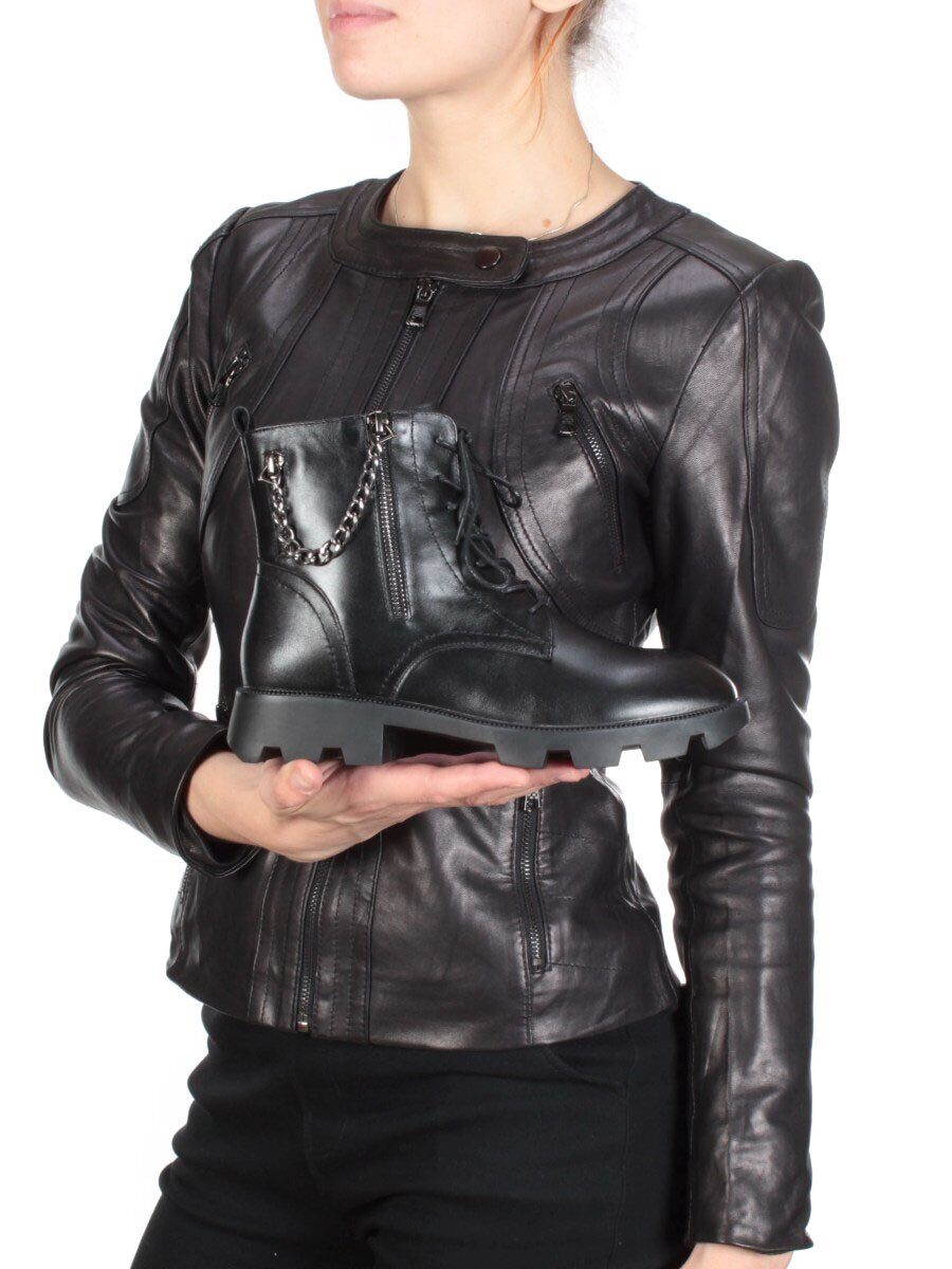 01-CYL94-1 BLACK Ботинки демисезонные женские (натуральная кожа, байка)