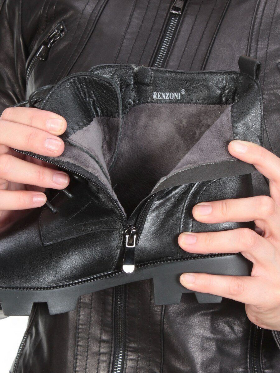 Черный Ботинки демисезонные женские (натуральная кожа, байка)