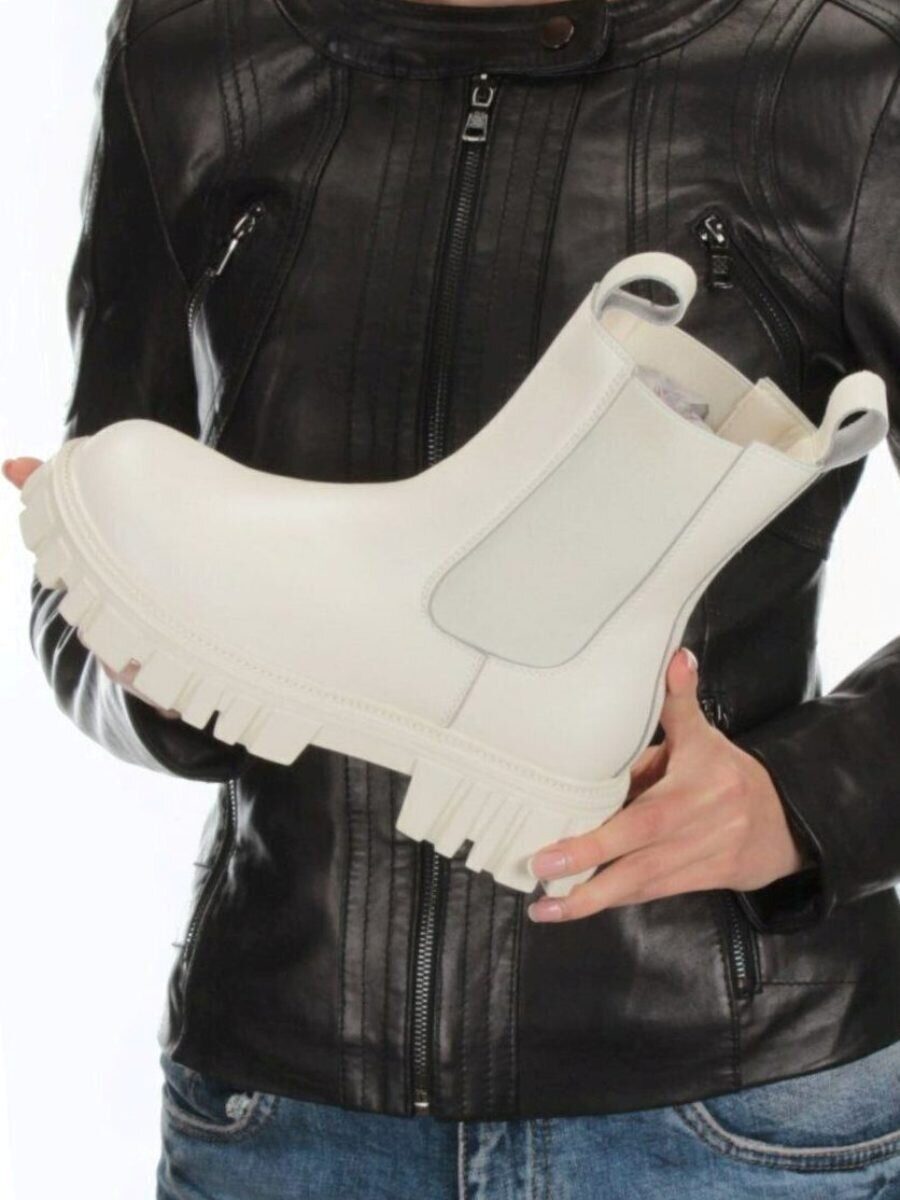 01-P39-2C WHITE Ботинки Челси демисезонные женские (натуральная кожа)