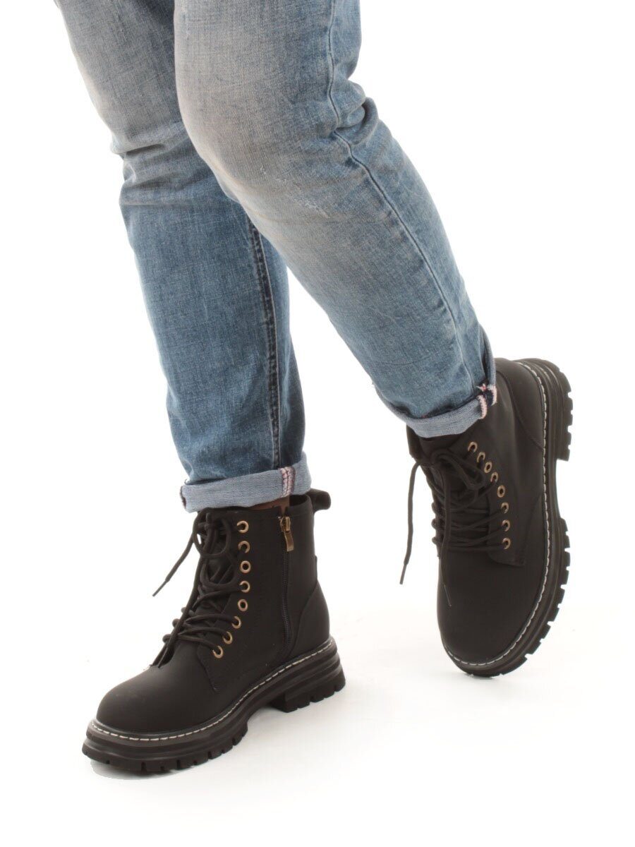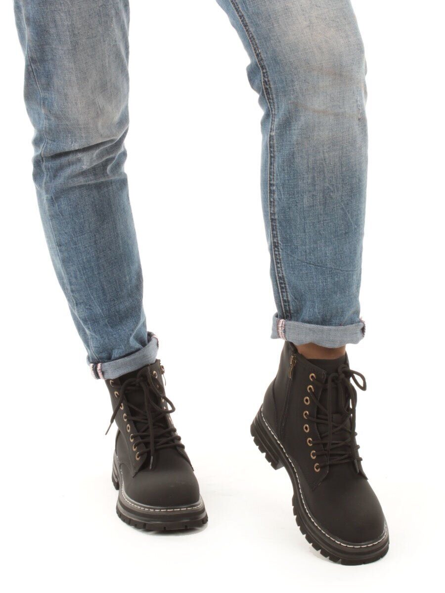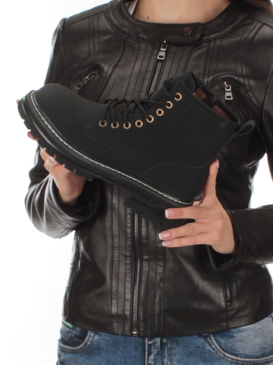 01-P8306-2 BLACK Ботинки демисезонные женские (натуральная кожа)