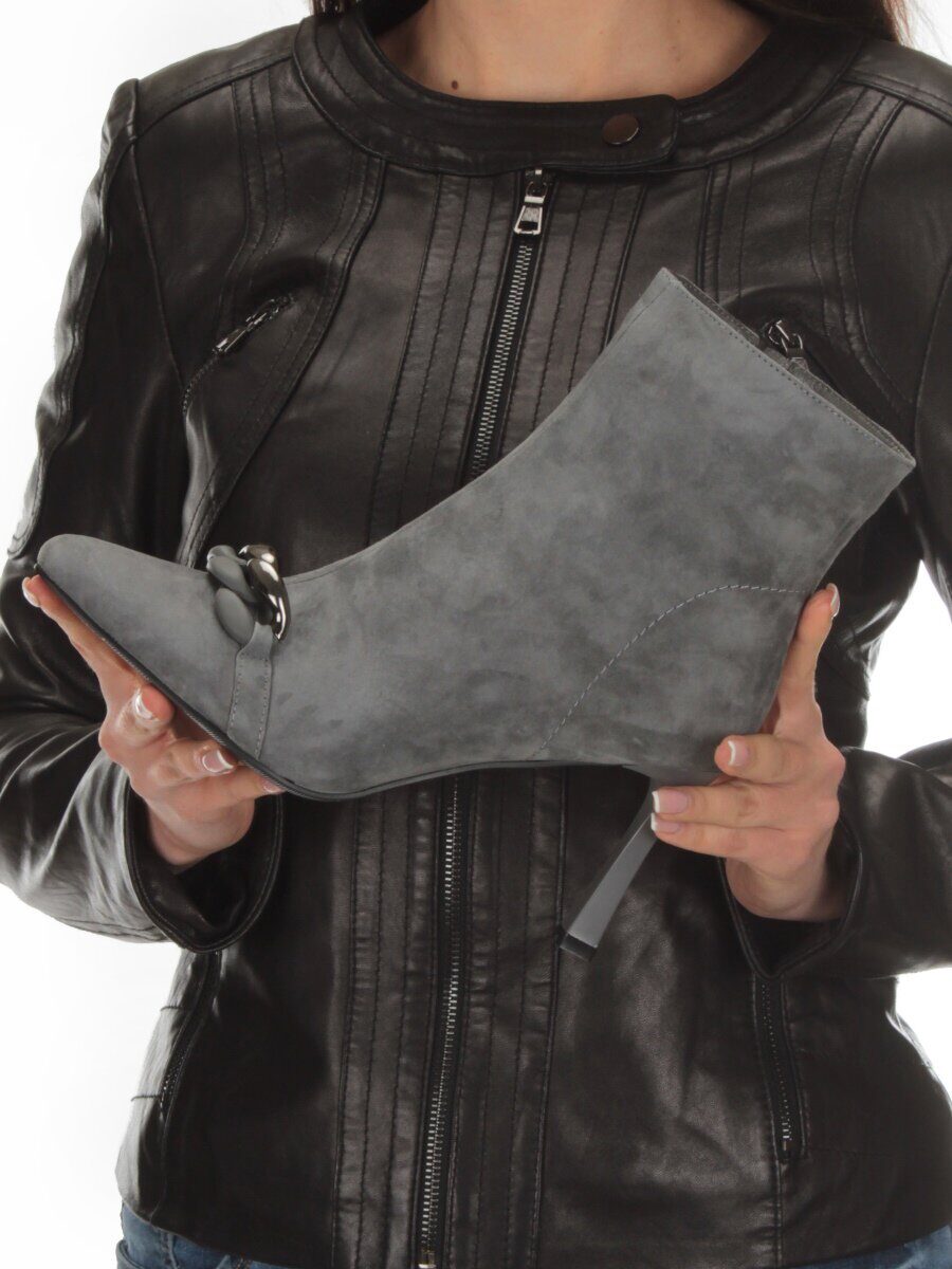 01-PCM343-6 DK. GRAY Ботинки демисезонные женские (натуральная замша, байка)