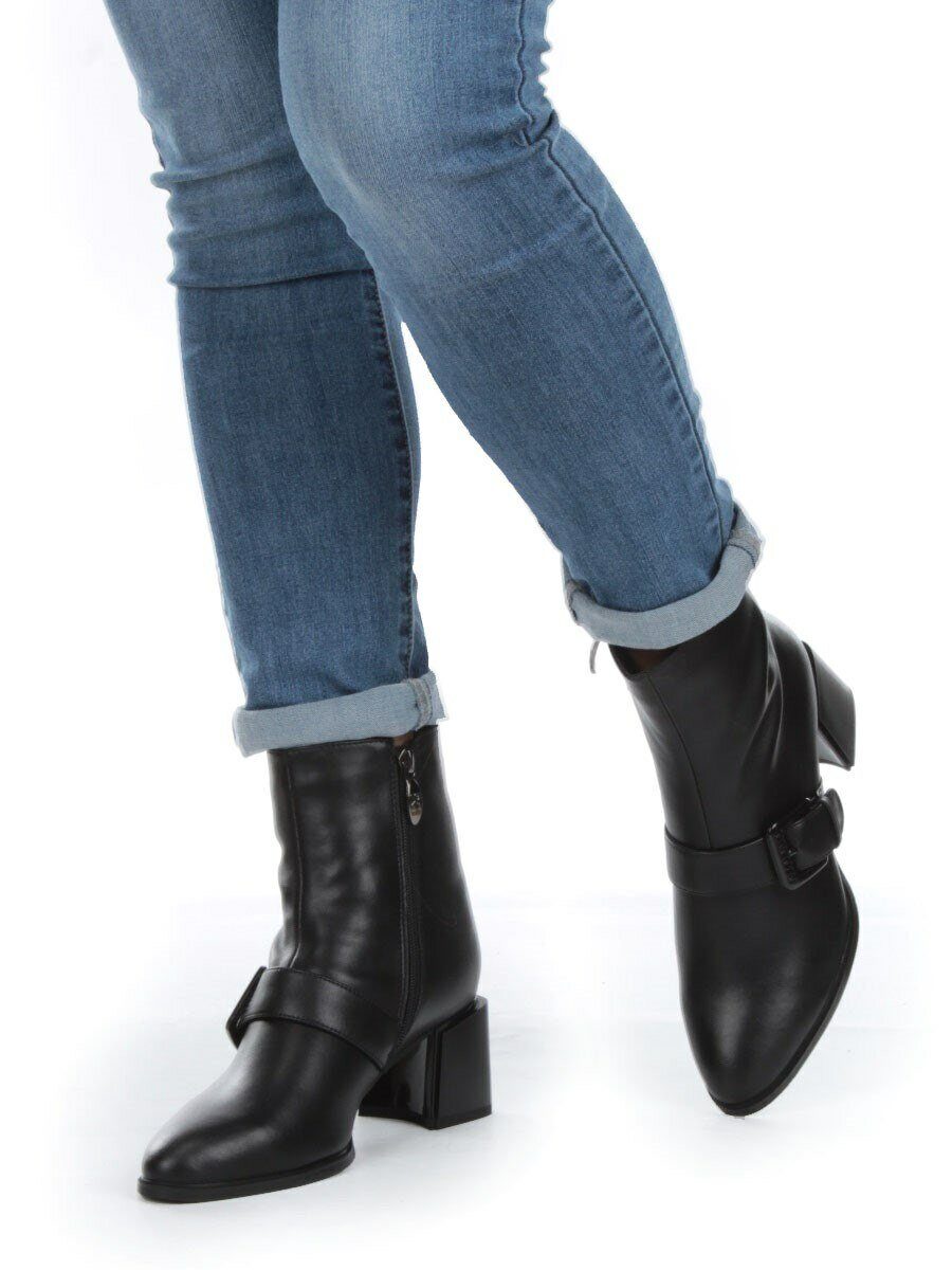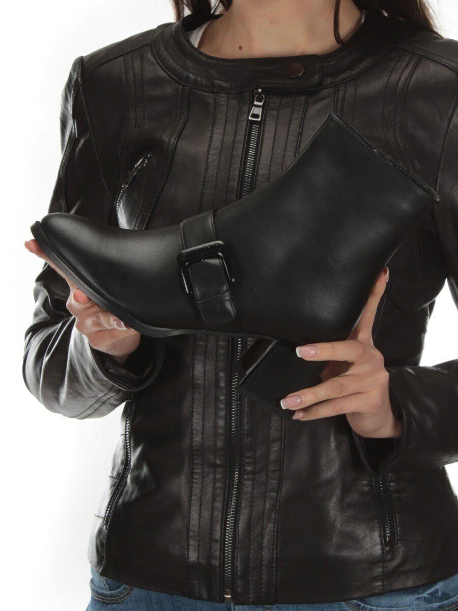01-PCM347-1 BLACK Ботинки демисезонные женские (натуральная кожа, байка)