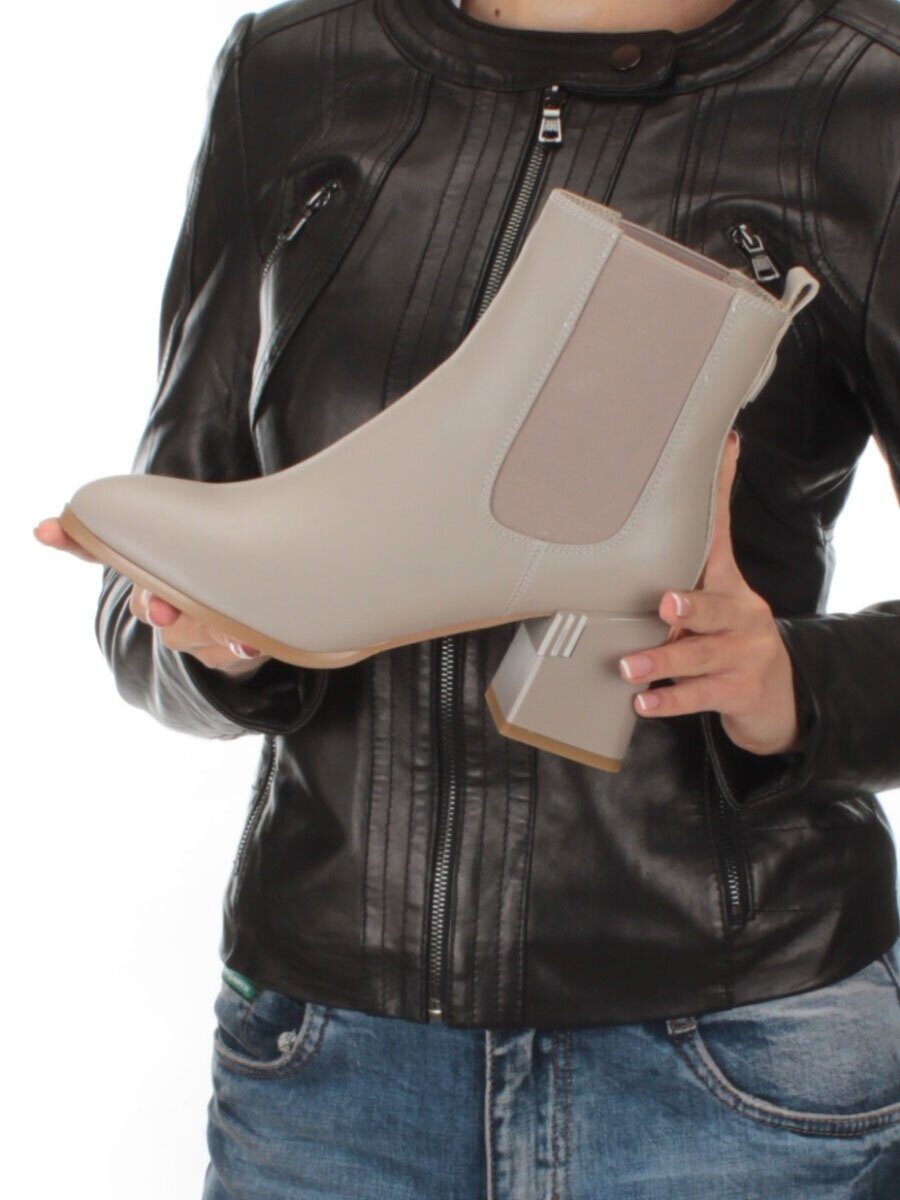 01-PCM359-2 GRAY/BEIGE Ботинки Челси демисезонные женские (натуральная кожа, байка)