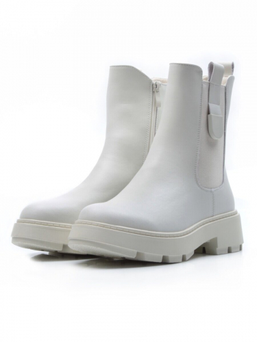 01-PCX55-2 WHITE Ботинки демисезонные женские (натуральная кожа, байка)