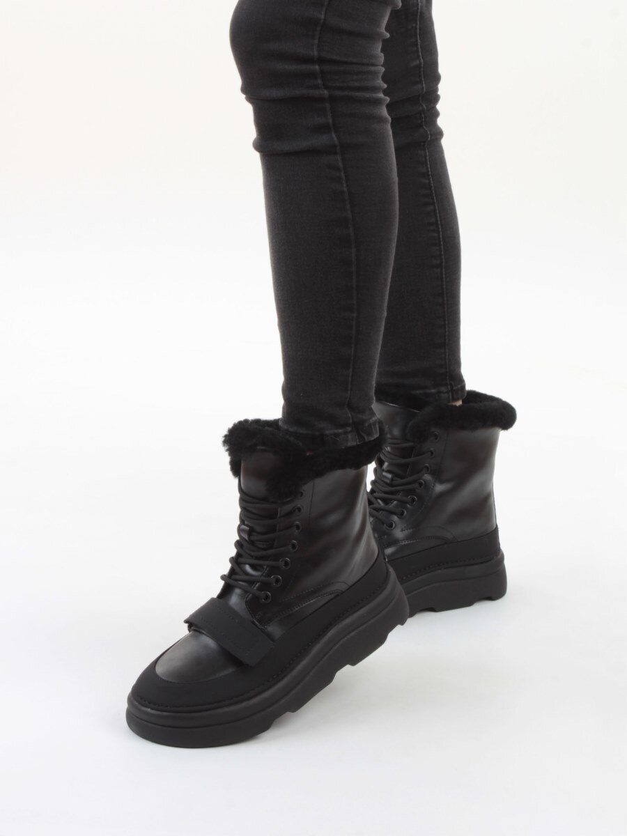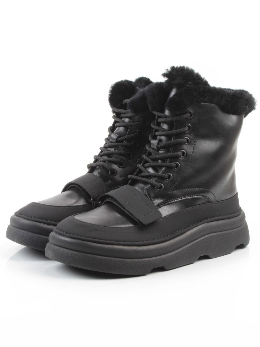 04-PAJ76-1Z BLACK Ботинки зимние женские (натуральная кожа, натуральный мех, 100% шерсть)