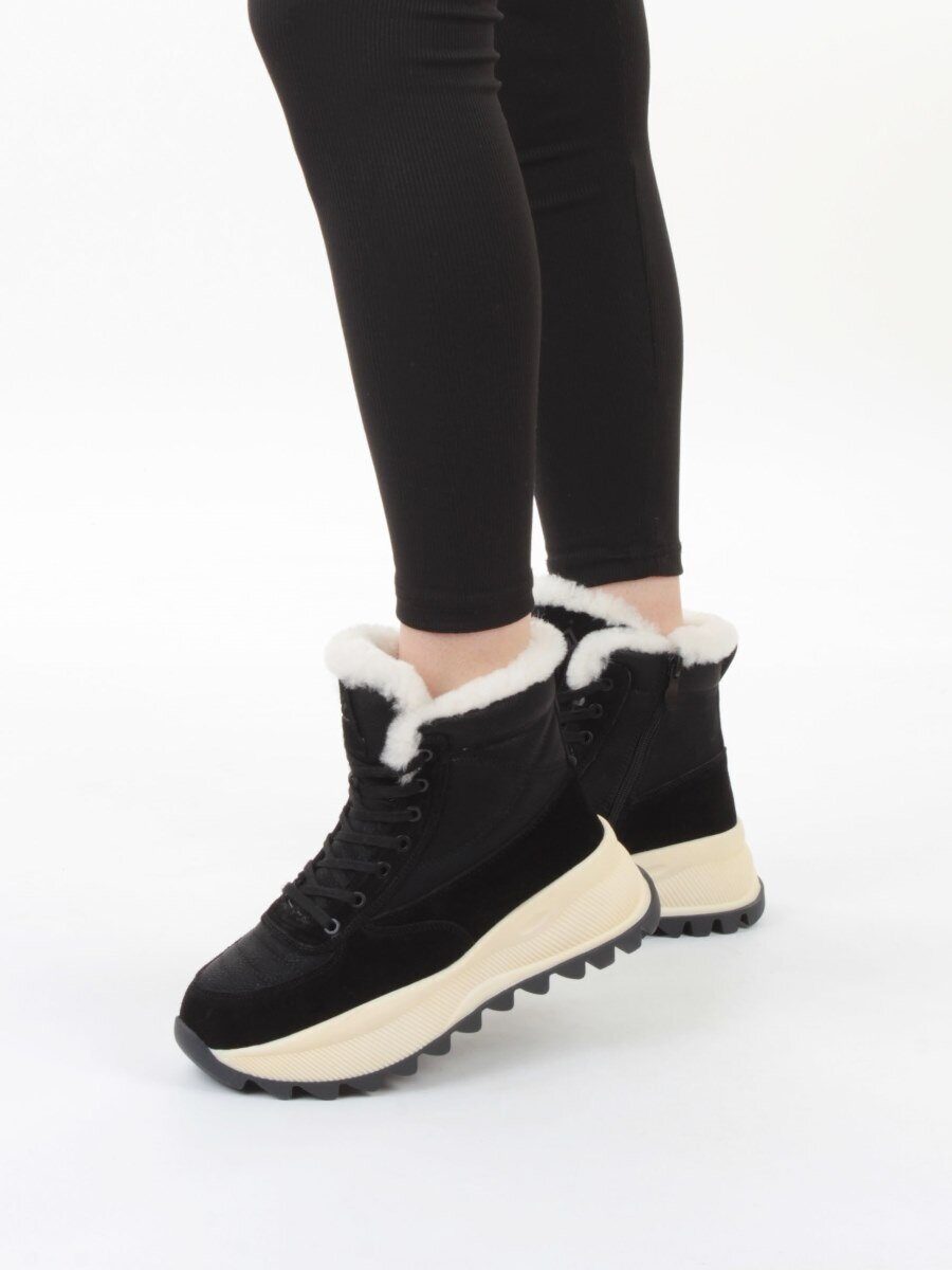 04-PAML05-1Z BLACK Ботинки зимние женские (натуральная замша, 100% шерсть, натуральный мех)