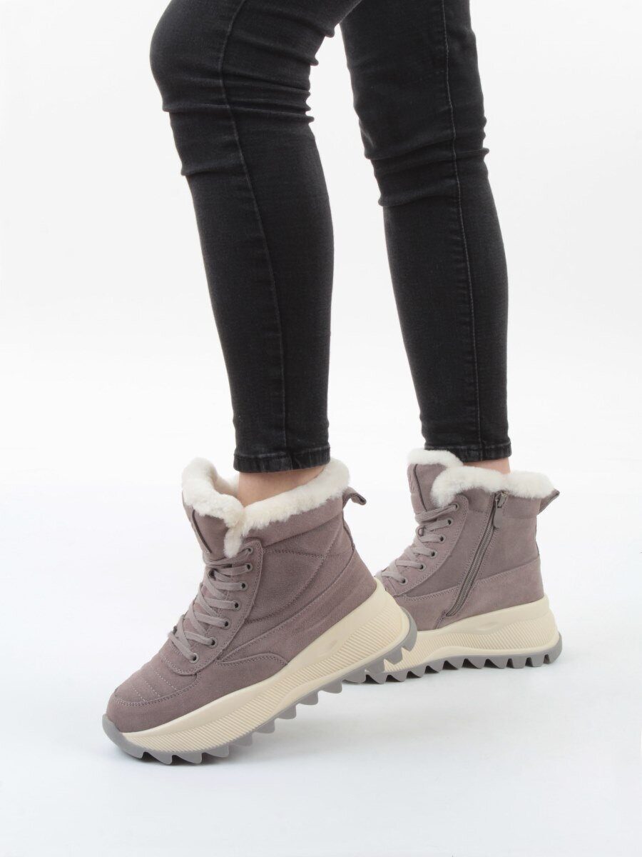 04-PAML05-2Z GRAY Ботинки зимние женские (натуральная замша, 100% шерсть, натуральный мех)