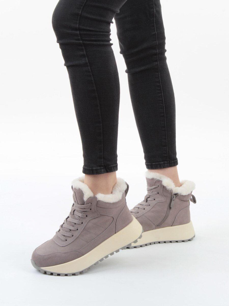 04-PAML08-3Z GRAY Ботинки зимние женские (натуральная замша, 100% шерсть, натуральный мех)