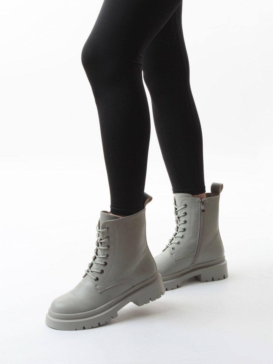 04-PAS70-3Z GRAY/GREEN Ботинки зимние женские (натуральная кожа, 100% шерсть)