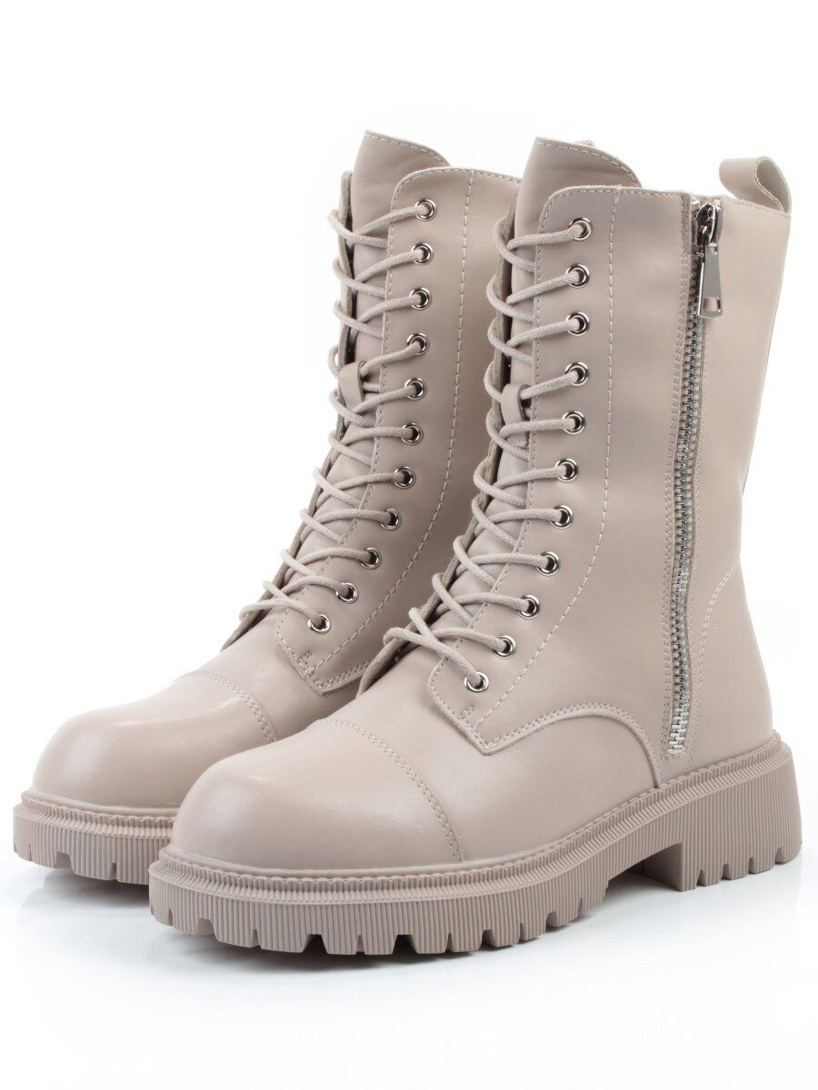 04-PAX83-2Z GRAY/BEIGE Ботинки зимние женские (натуральная кожа, 100% шерсть)