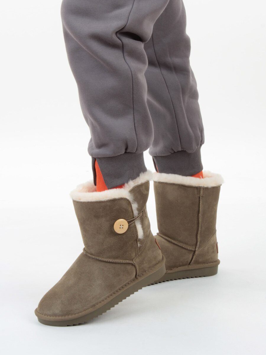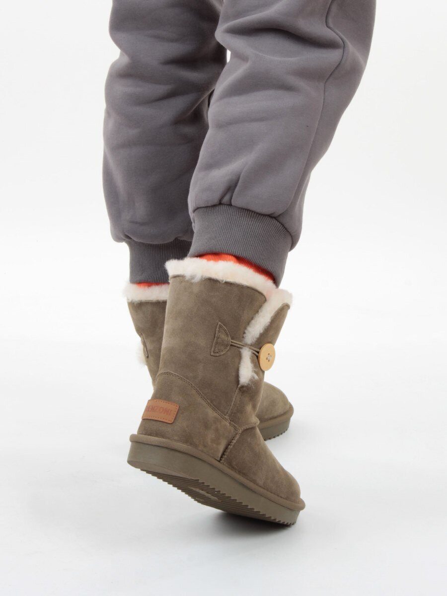 04-PAYH02-3Z KHAKI Угги женские (натуральная замша, 100% шерсть, натуральный мех)