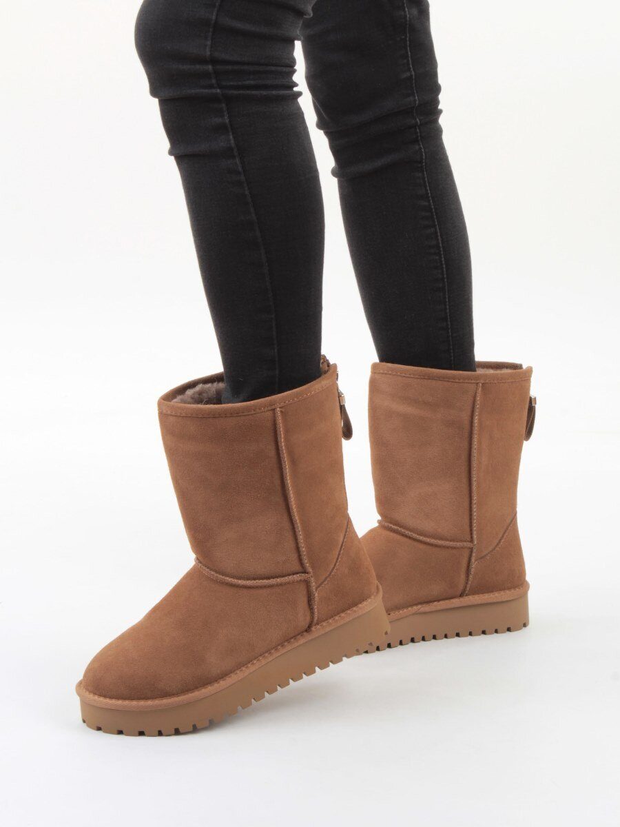 Коричневый Угги женские (натуральная замша, 100% шерсть)