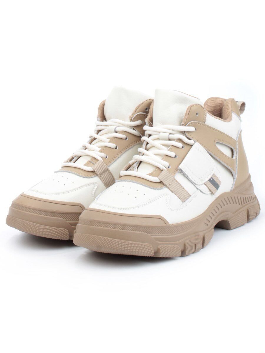 05-P51-2Z BEIGE Кроссовки женские зимние (натуральная и искусственная кожа, шерсть)
