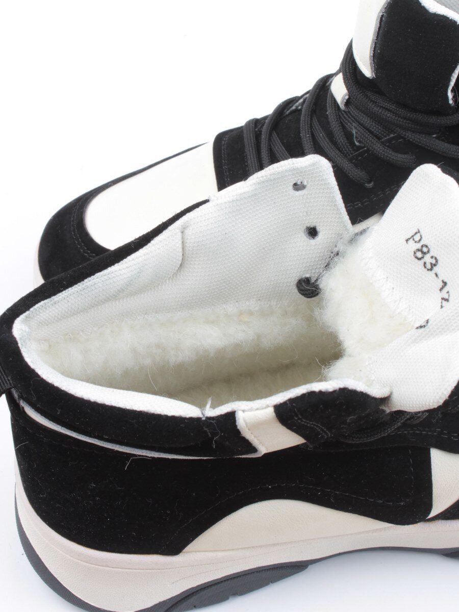 05-P83-1Z BLACK/WHITE Кроссовки женские зимние (натуральная кожа, шерсть)