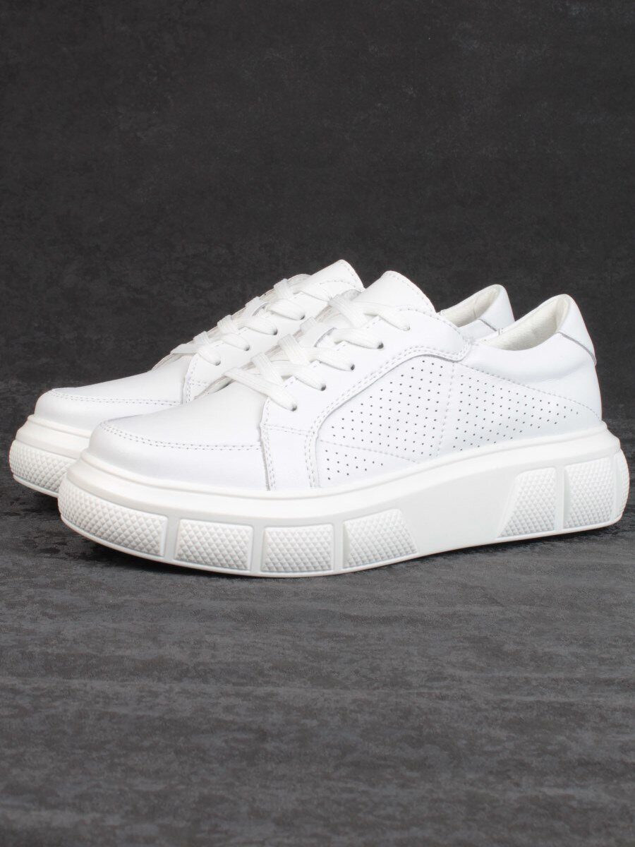 05-PDE35-1 WHITE Кроссовки женские (натуральная кожа)