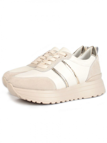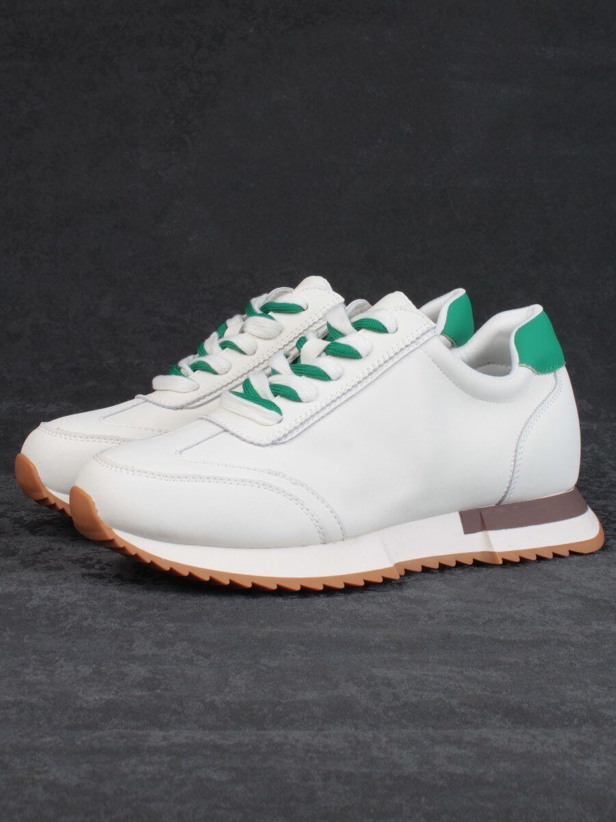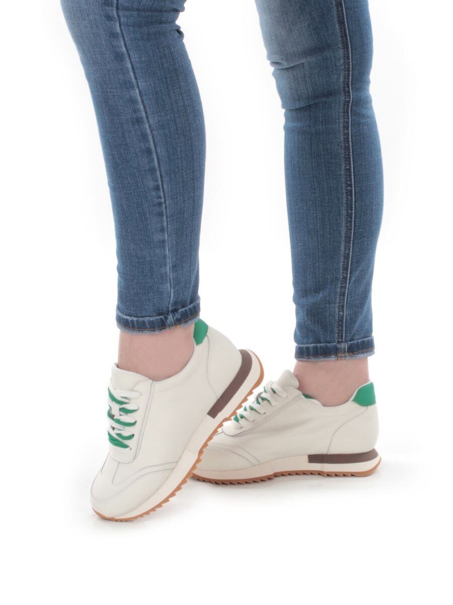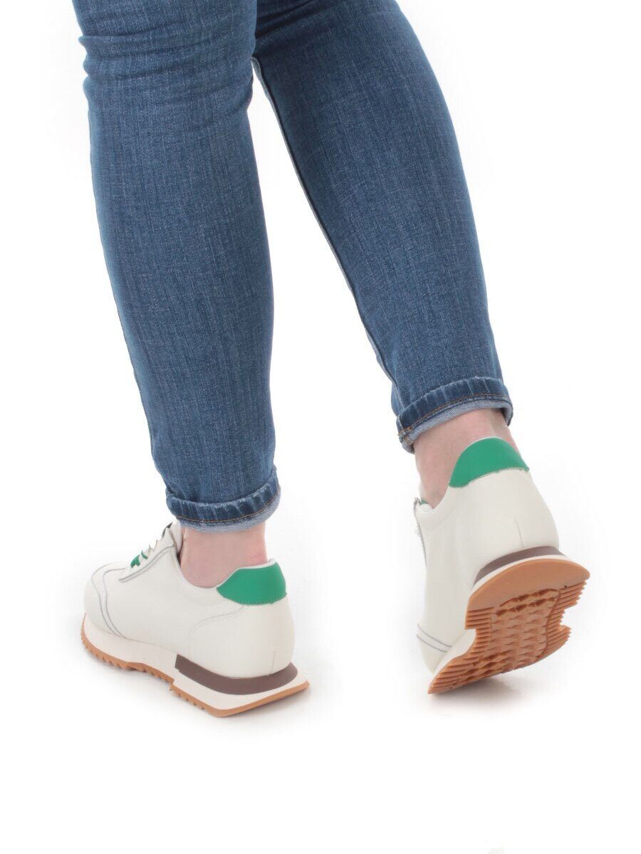 05-PDJ66-2 BEIGE/GREEN Кроссовки женские (натуральная кожа)