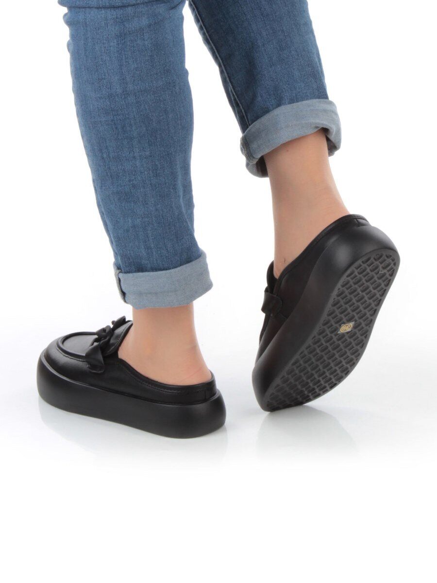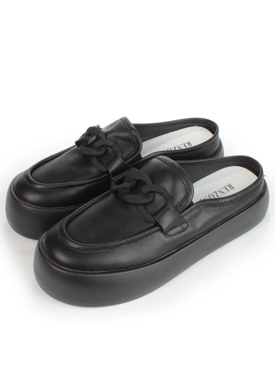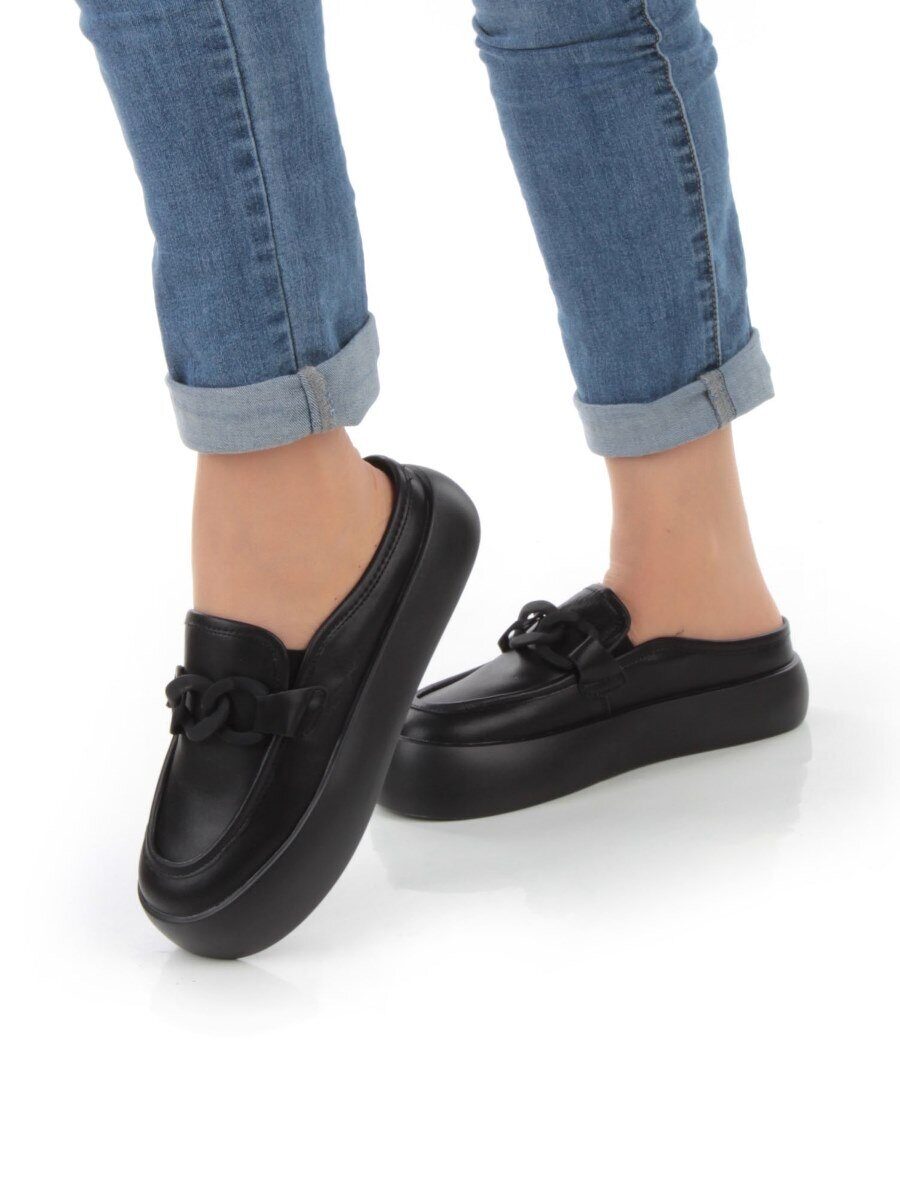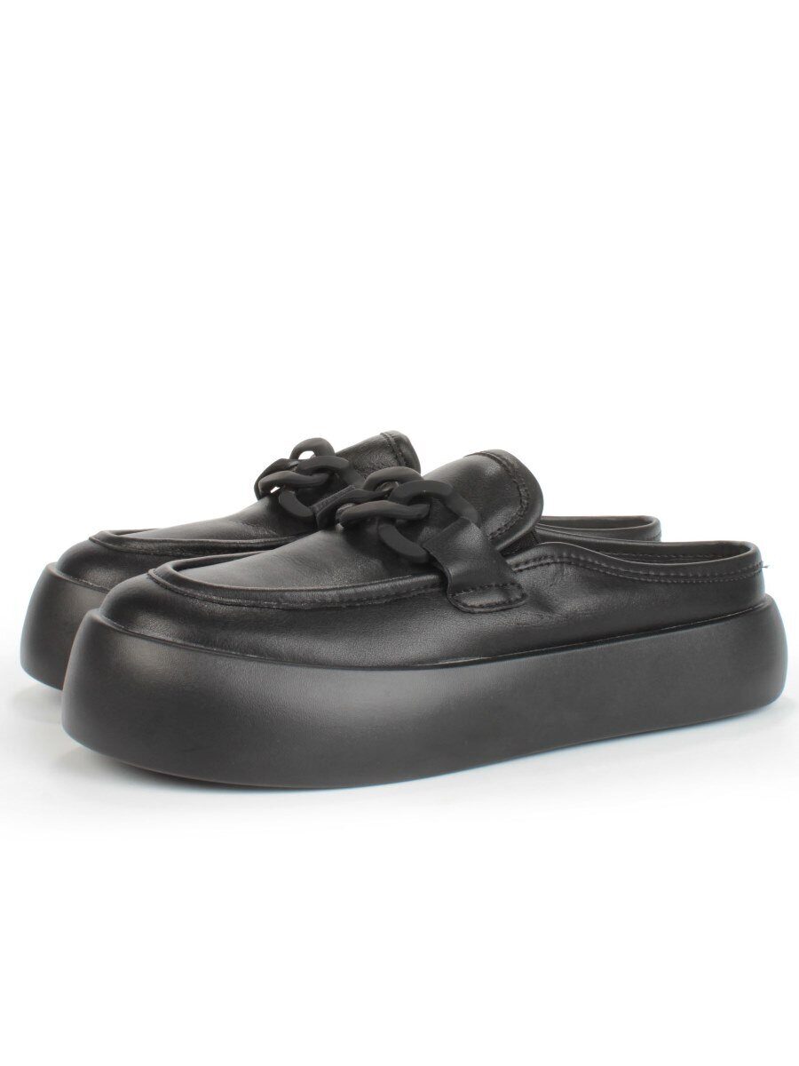 07-DJ45-2 BLACK Лоферы женские без задника (натуральная кожа)