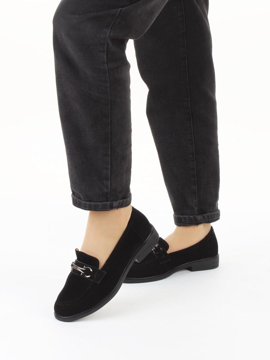 03-DEB16-2 BLACK Лоферы женские (натуральная замша)