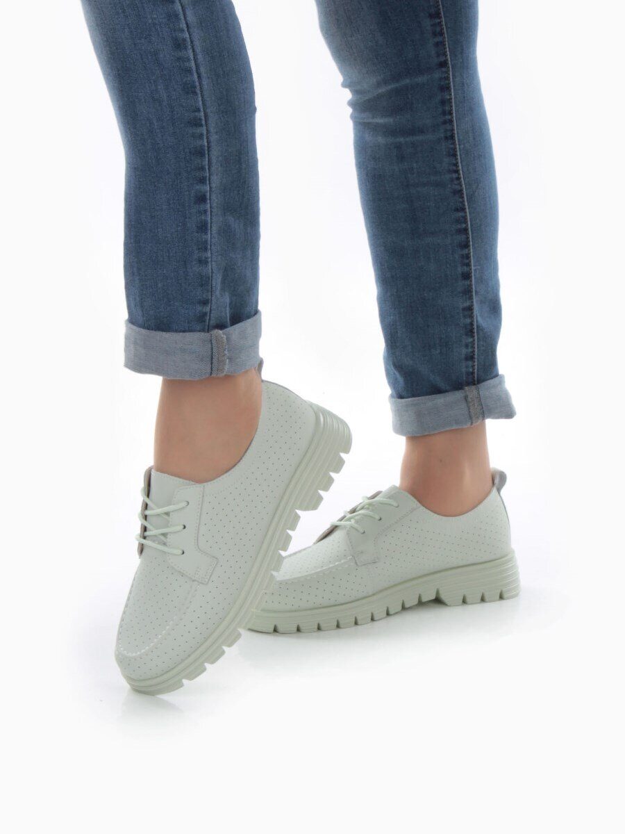 Светло-зелёный Полуботинки женские (натуральная кожа)