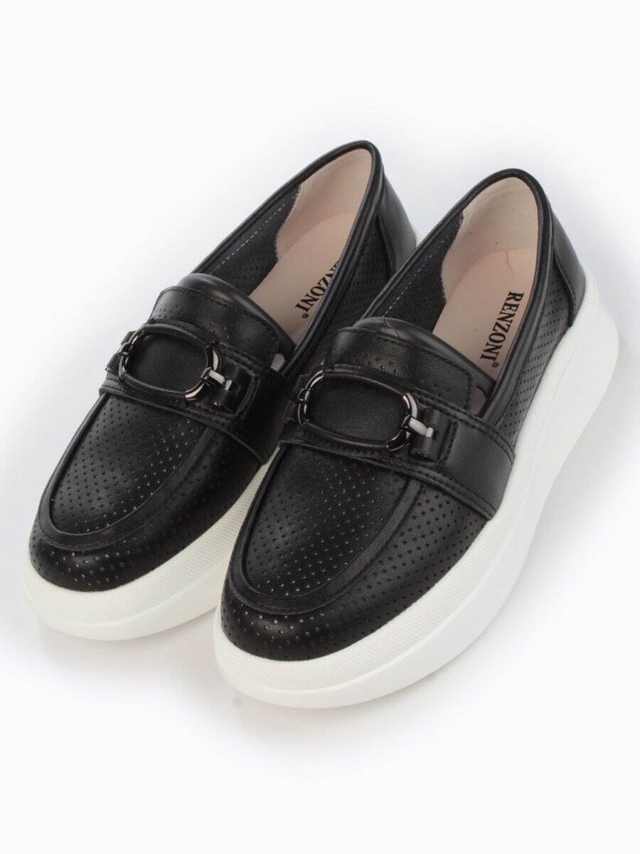 03-PDD169-6 BLACK/WHITE Полуботинки женские (натуральная кожа)