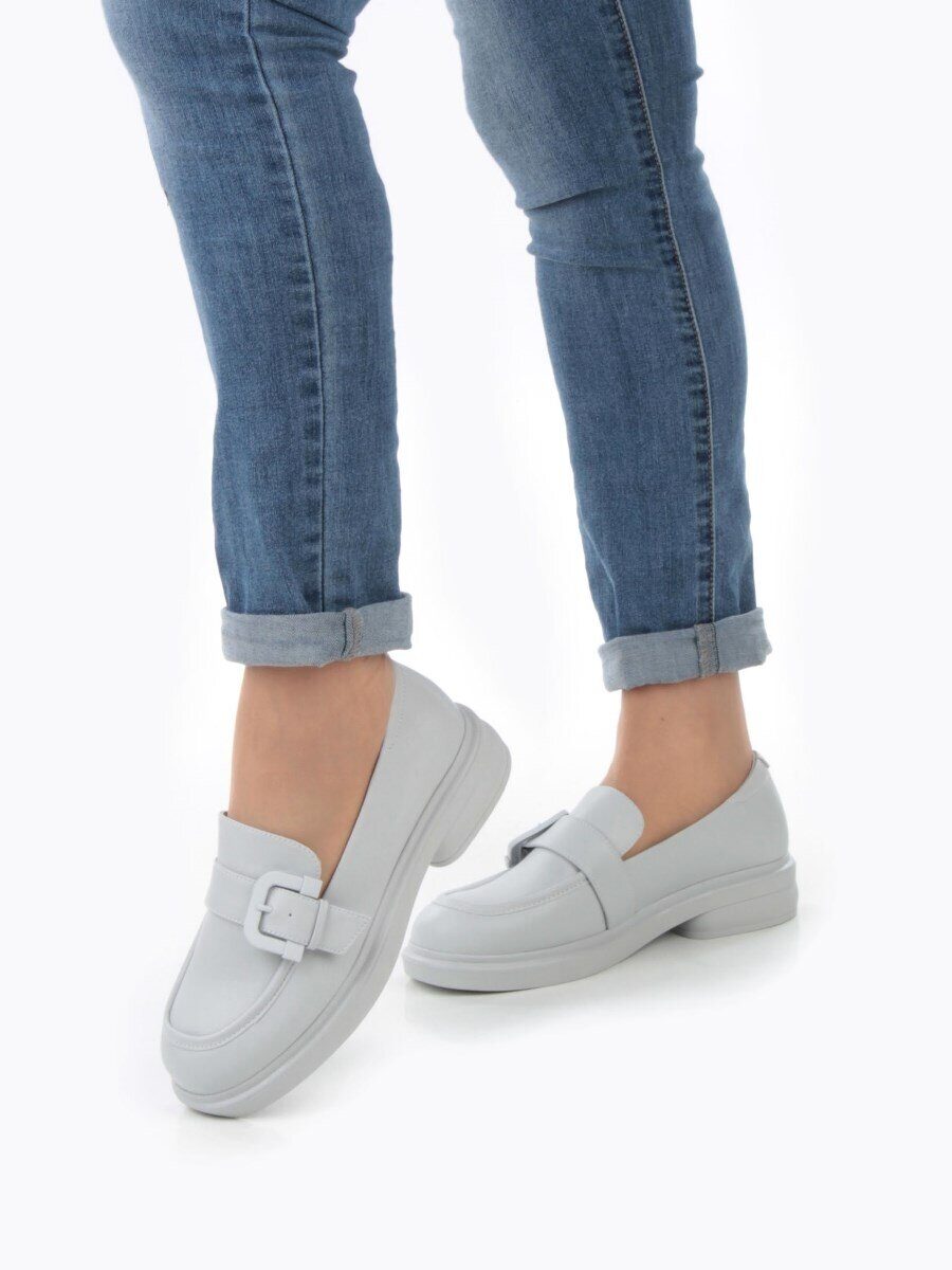 03-PDJ71-3 LT. GRAY Лоферы женские (натуральная кожа)