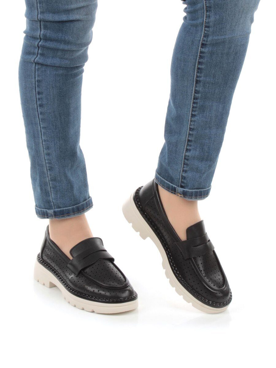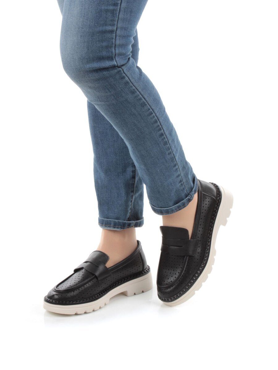 03-YD10-3D BLACK Лоферы женские (натуральная кожа)