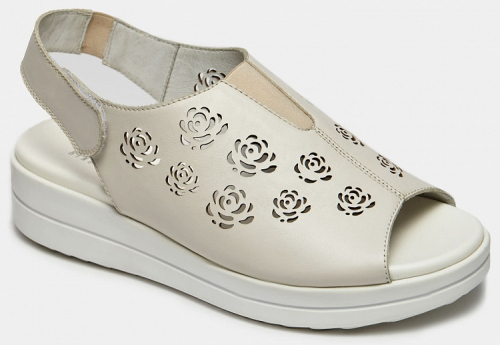 Сандалии женские ULA из натуральной кожи черного цвета. Сквозная перфорация в виде стилизованных цветков роз не только украшает, но и свободно пропускает воздух, в обуви будет комфортно в жару. Эластичная резинка на подъеме и ремешке регулирует посадку, модель подходит на широкую ногу. Липучка велкро помогает быстро обуваться. Легкая подошва анатомической формы из полиуретана позволит вам меньше уставать. Сочетайте сандалии черные с юбками, брюками и джинсами.