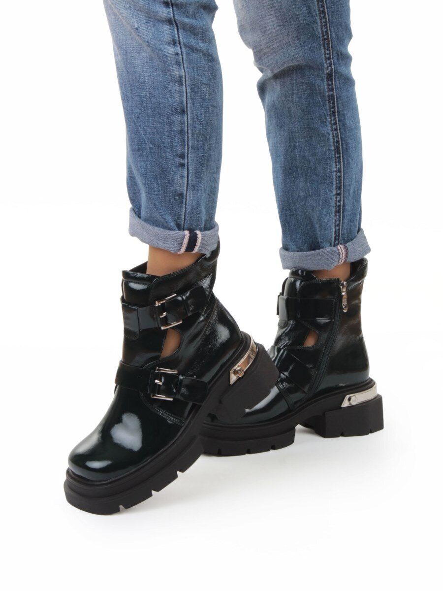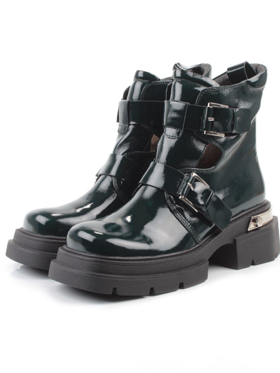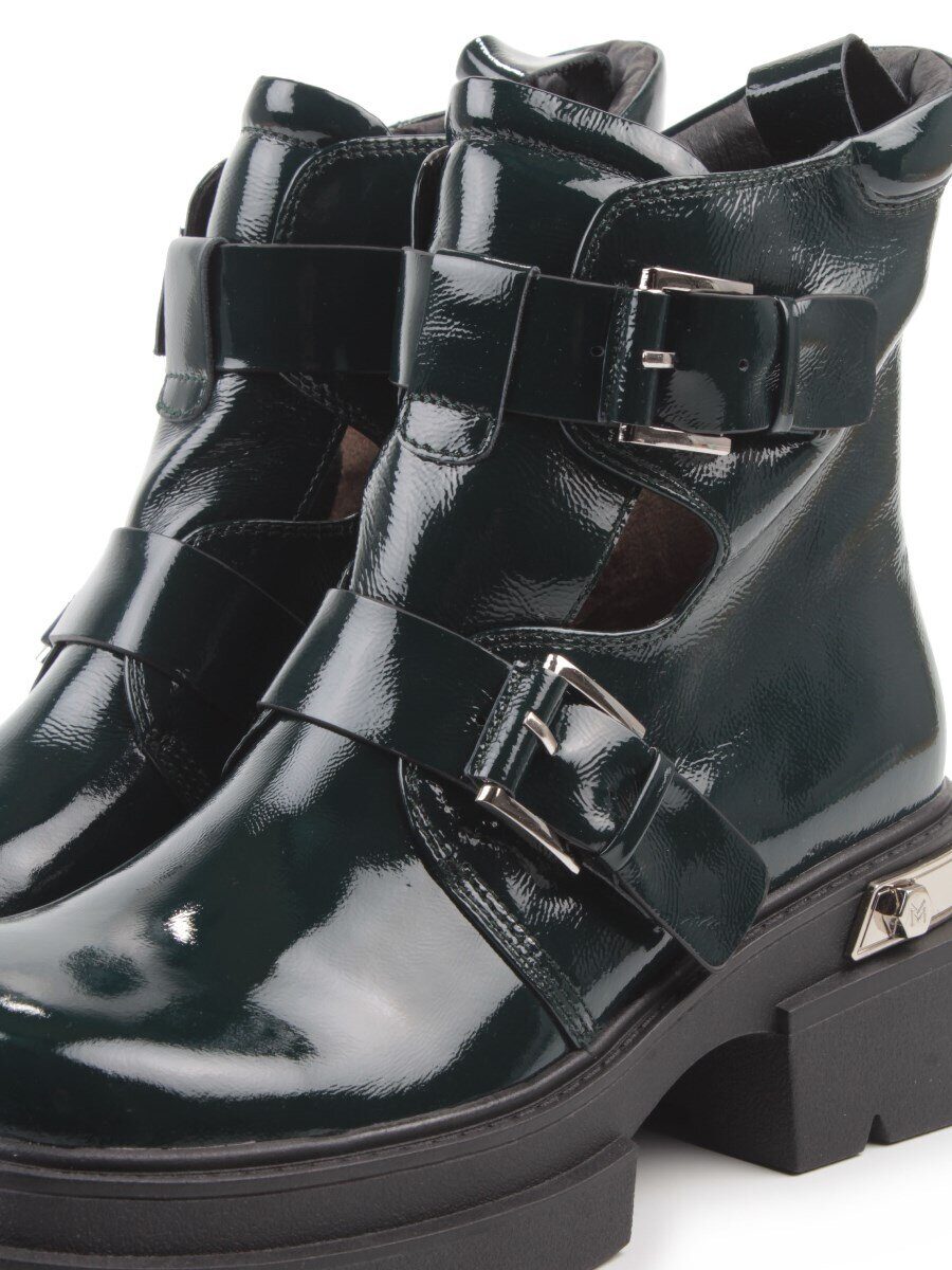 Темно-зеленый Ботинки демисезонные женские (натуральная кожа, байка)