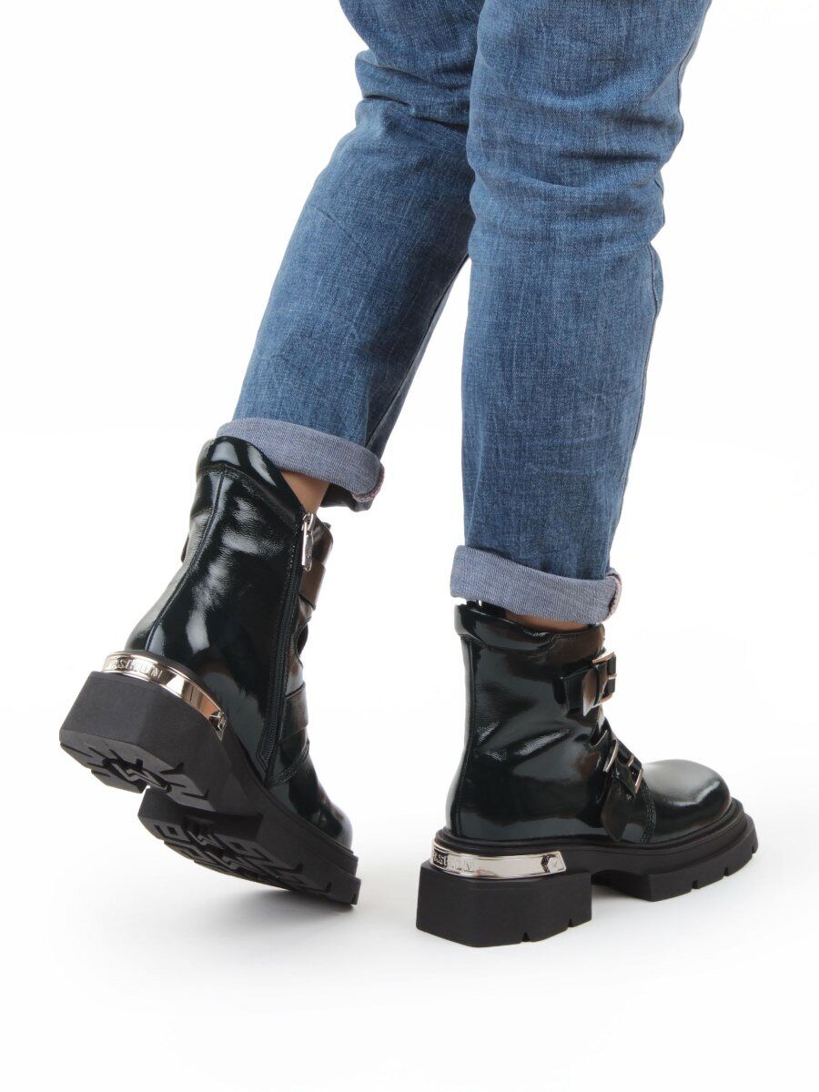 01-D1-8070 DK. GREEN Ботинки демисезонные женские (натуральная кожа, байка)