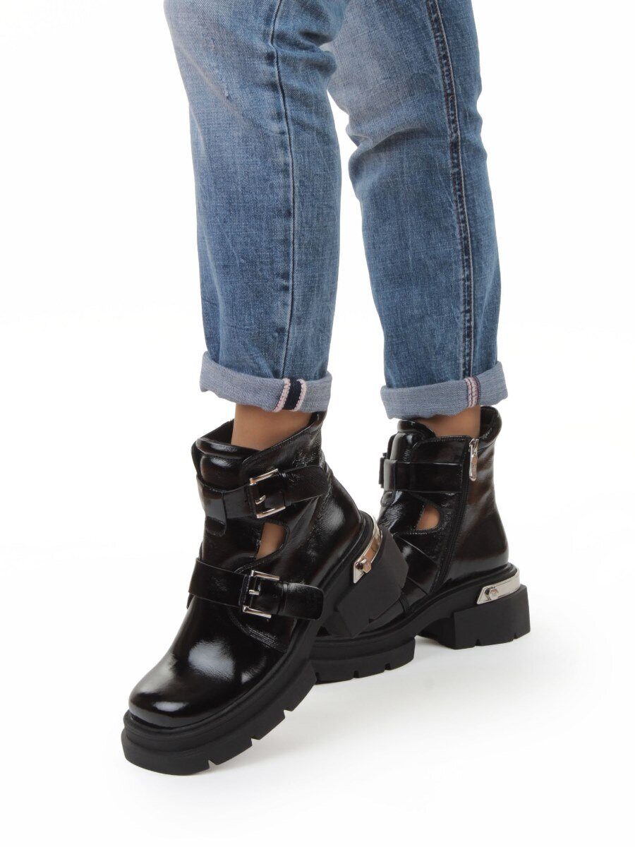 01-D1-8071 BLACK Ботинки демисезонные женские (натуральная кожа, байка)