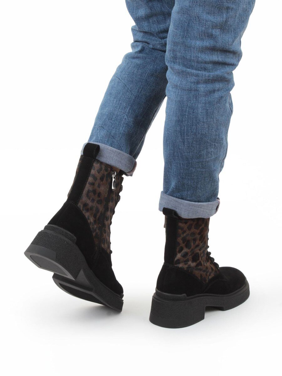 01-DMD-D269 BLACK/LEOPARD Ботинки демисезонные женские (натуральная кожа, байка)