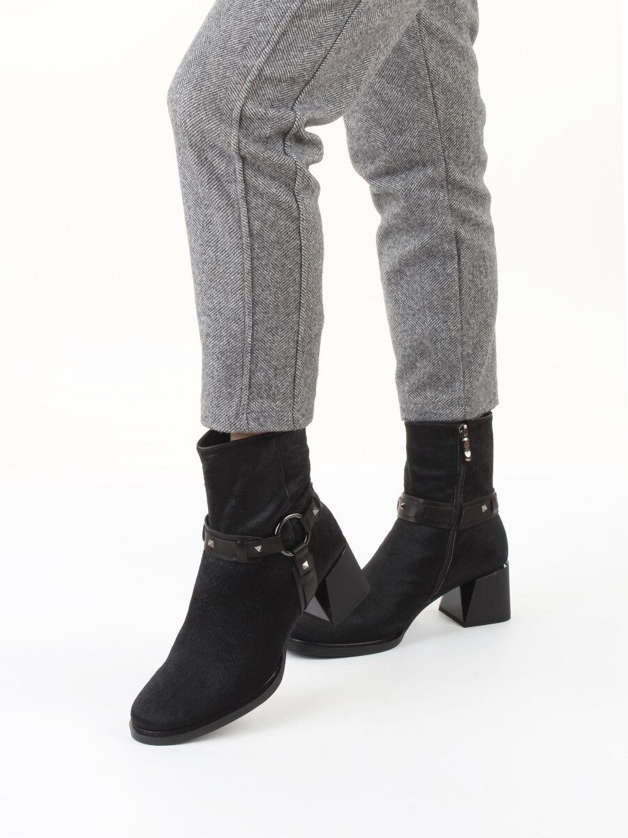 04-HJM3013 BLACK Ботинки зимние женские (натуральная кожа, натуральный мех)