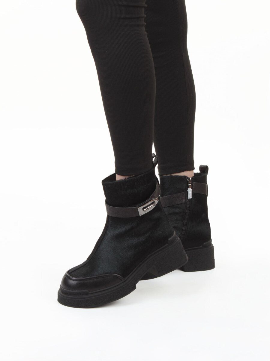 Черный Ботинки зимние женские (натуральная кожа, натуральный мех)