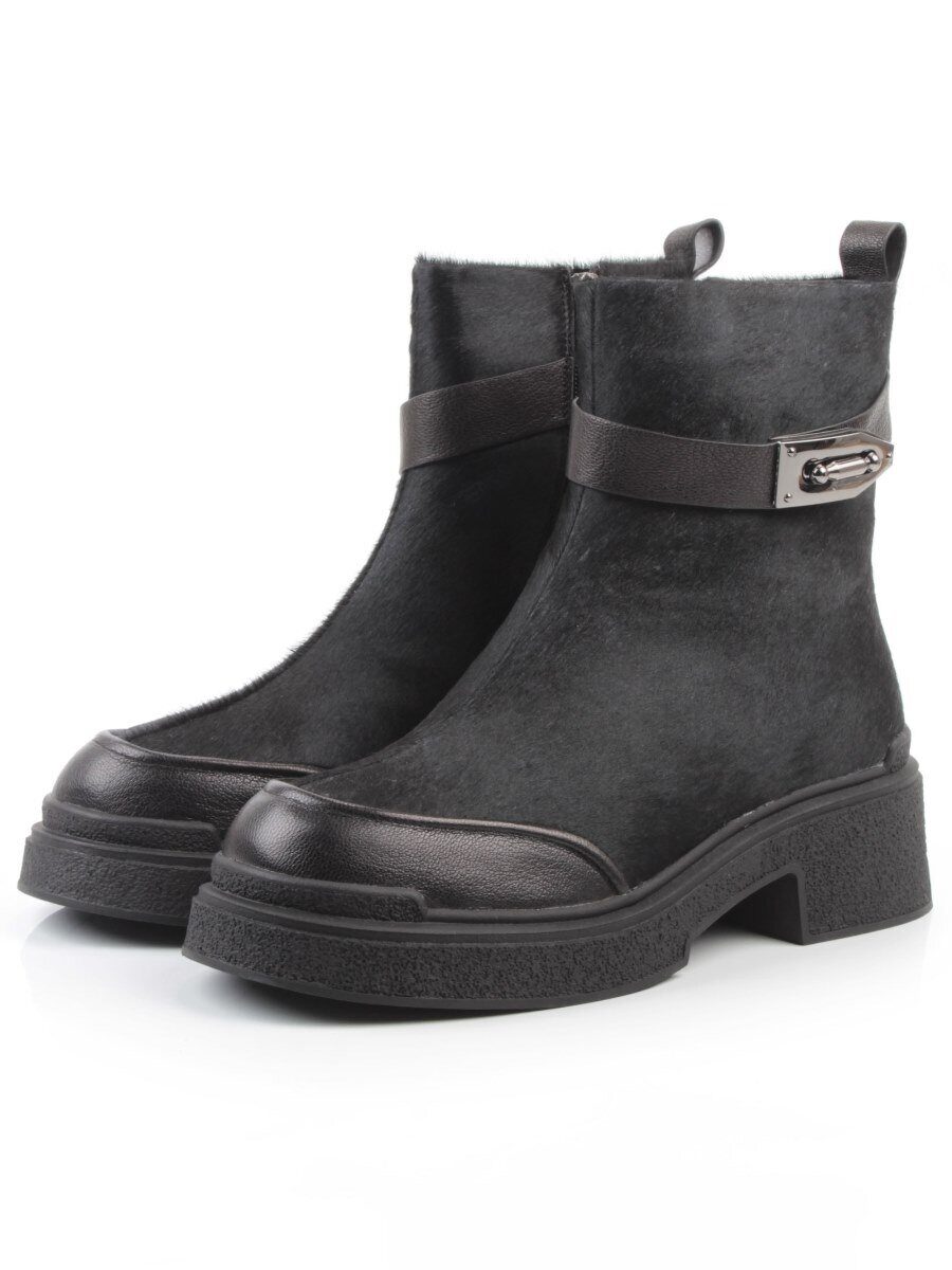 04-HSM704 BLACK Ботинки зимние женские (натуральная кожа, натуральный мех)