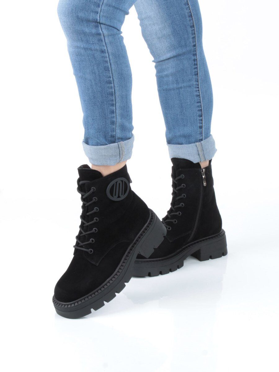 04-M3-1477 BLACK Ботинки зимние женские (натуральная замша, натуральный мех)