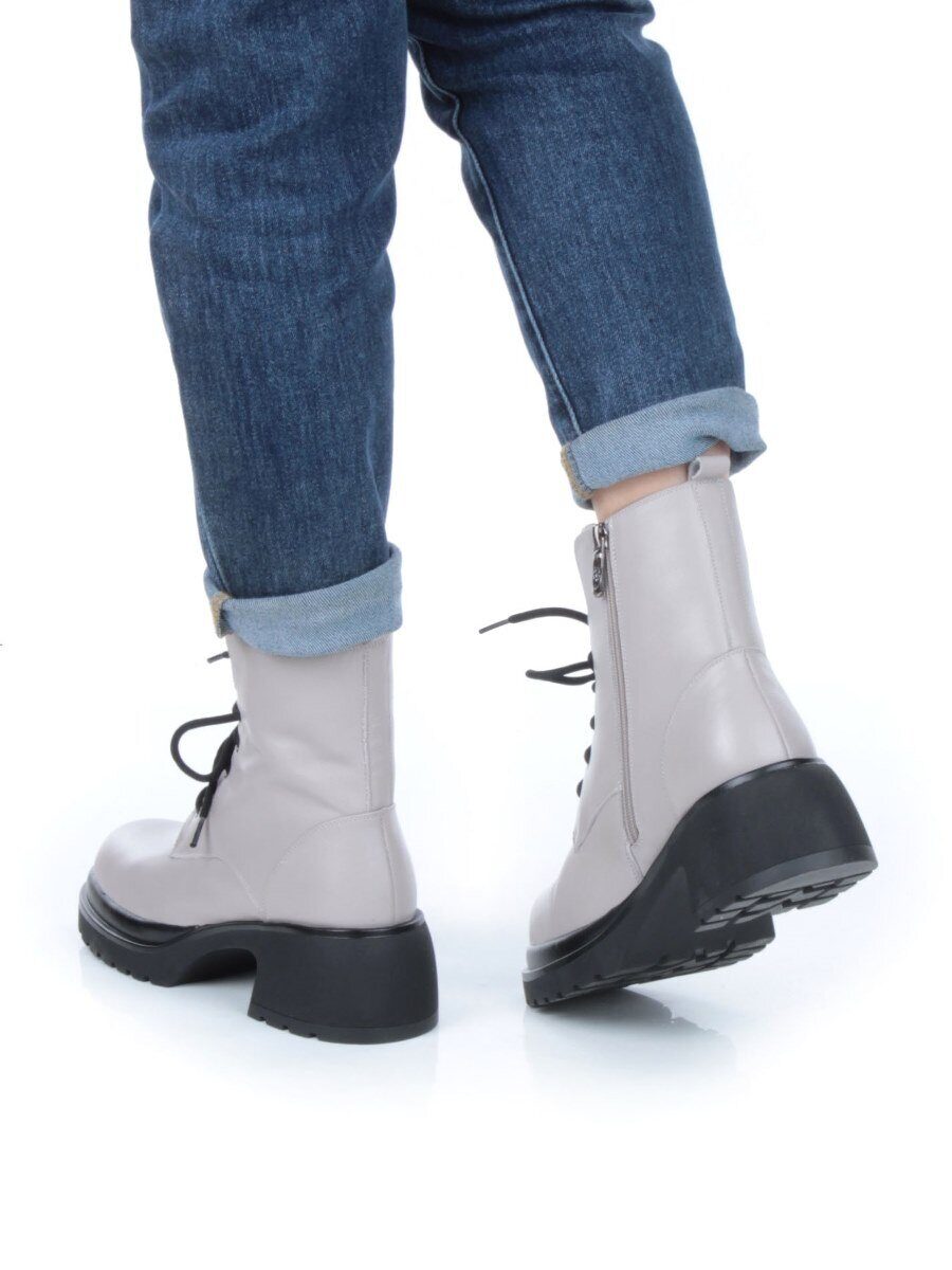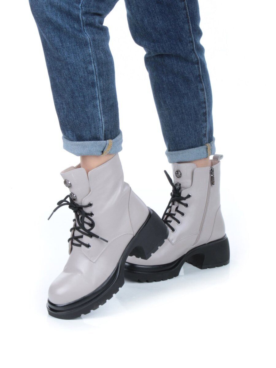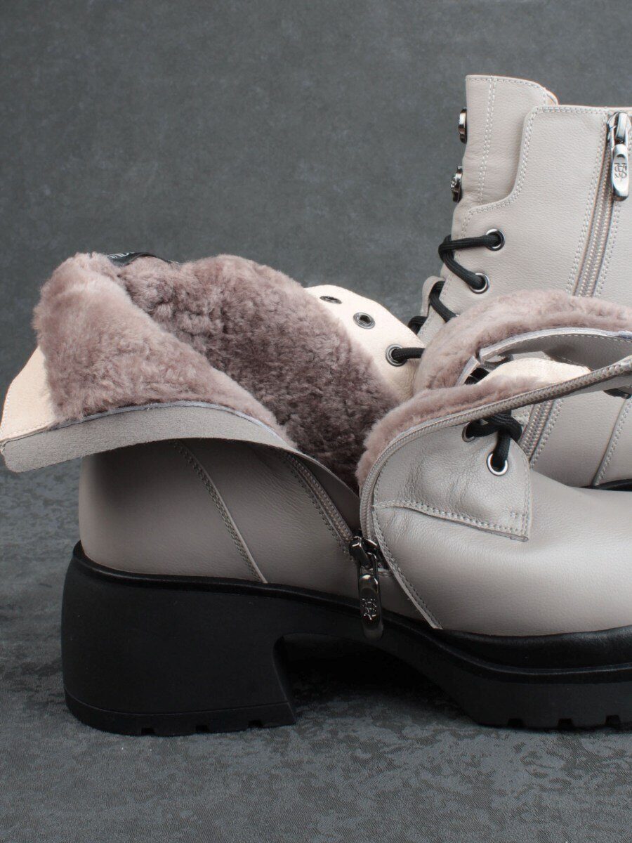 04-M3-H205 BEIGE GRAY Ботинки зимние женские (натуральная кожа, натуральный мех)