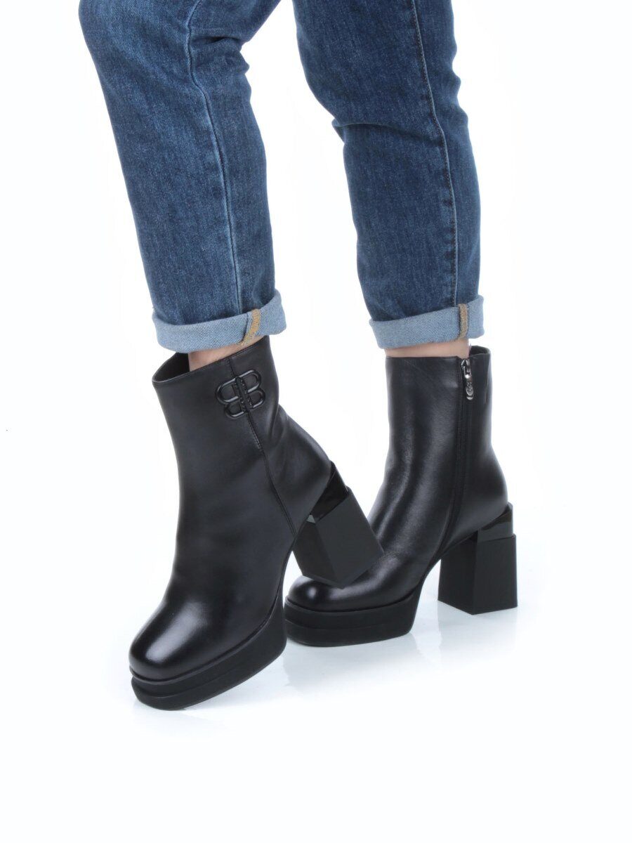 04-M3-H271 BLACK Ботильоны зимние женские (натуральная кожа, натуральный мех)