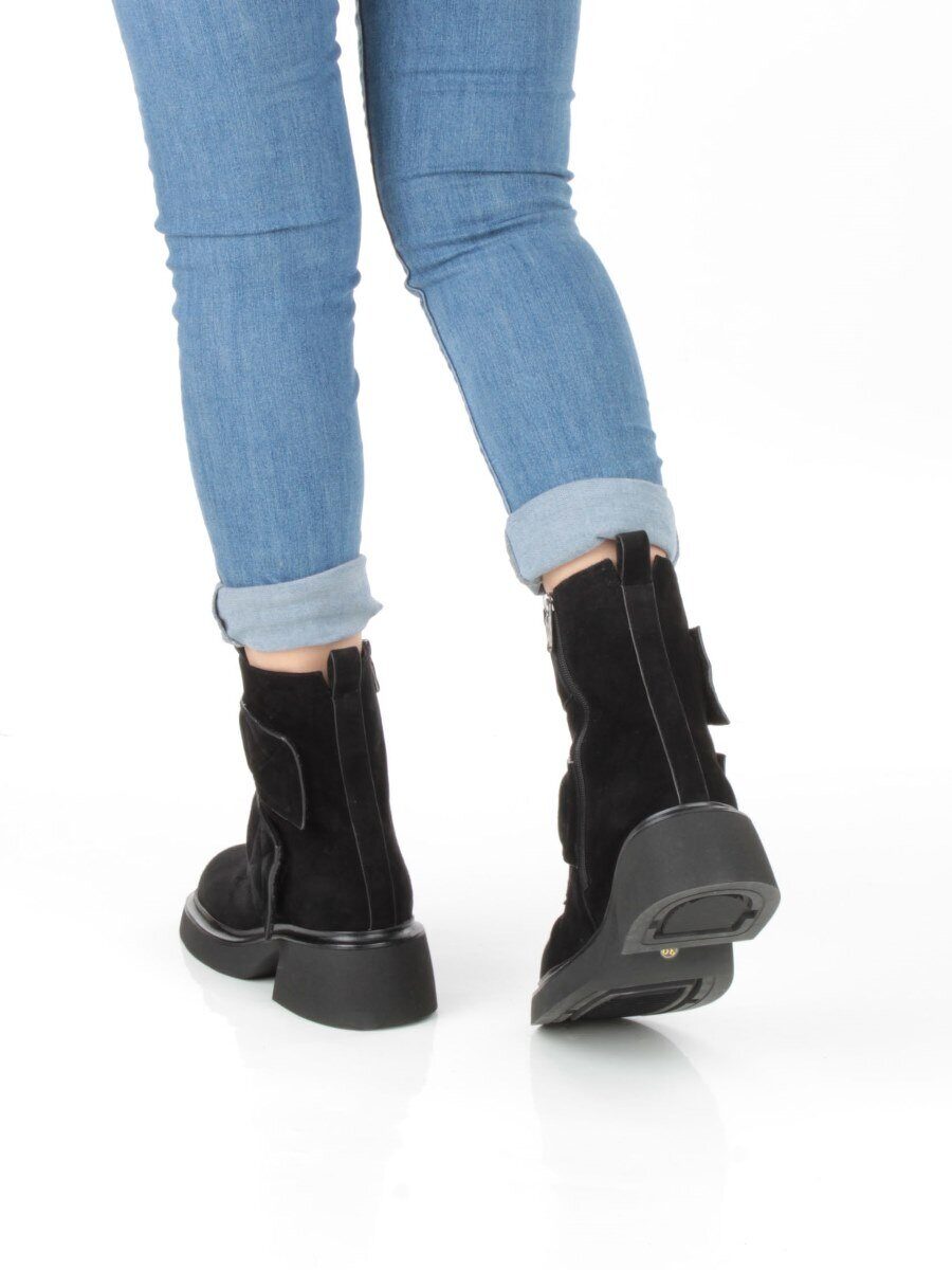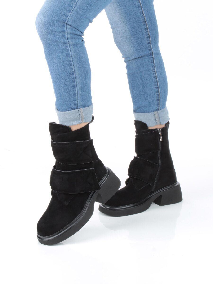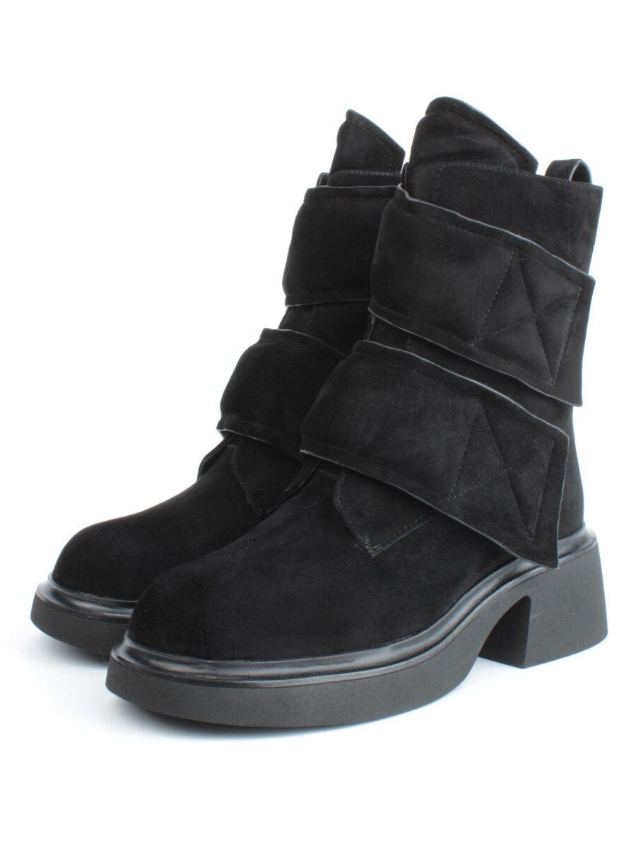 04-M3-HSM711 BLACK Ботинки зимние женские (натуральная замша, натуральный мех)