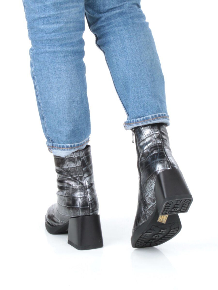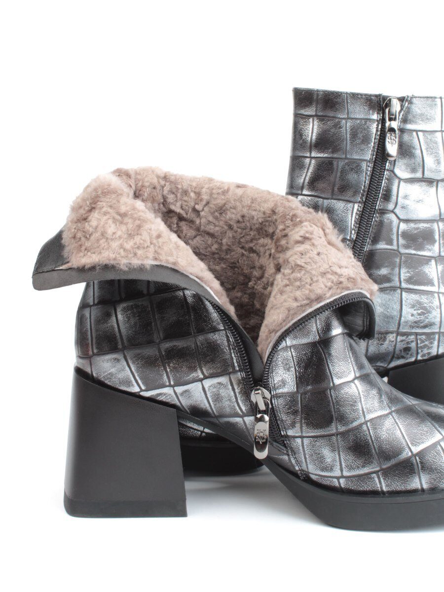 04-ZYM936 BLACK SILVER Ботильоны зимние женские (натуральная кожа, натуральный мех)