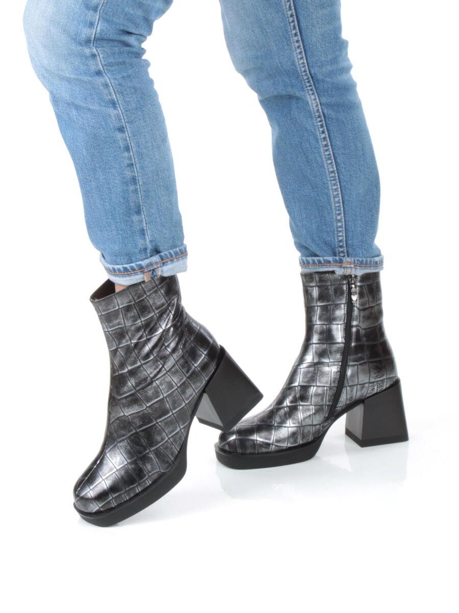 04-ZYM936 BLACK SILVER Ботильоны зимние женские (натуральная кожа, натуральный мех)
