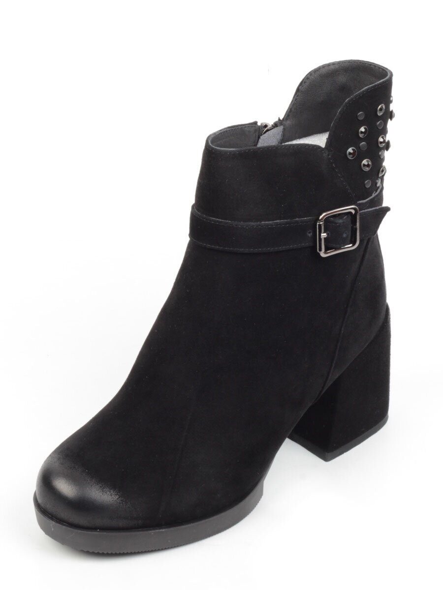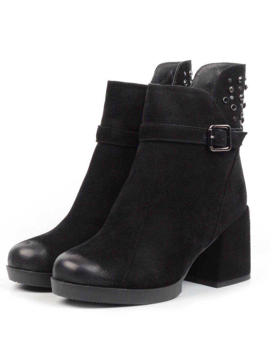 04-R164-1 BLACK Полусапоги женские (натуральная замша, натуральный мех)