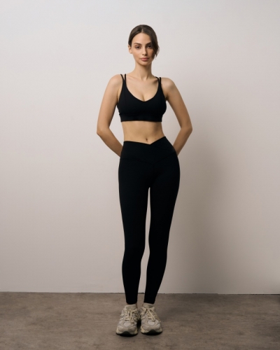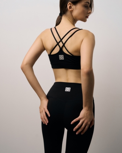 ПОЛИЭСТЕР 70%; ЭЛАСТАН 30%Топ спортивный с рельефными швами по груди /v-образным вырезом .На плечеках двойные завязки -спагетти переплетенные на спине.